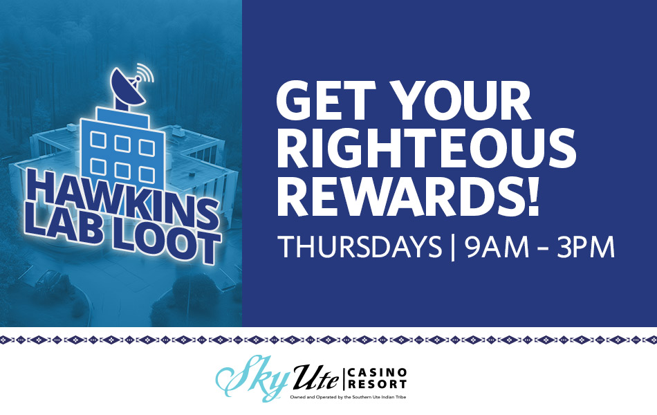 We’re cranking up the Walkman and flashing back to the ‘80s — with a twist. Ace’s Club members who earn 80 points can head to any promo kiosk to play Hawkins Lab Loot, our exclusive scratch-off game packed with retro thrills and Sky Ute loot rewards.